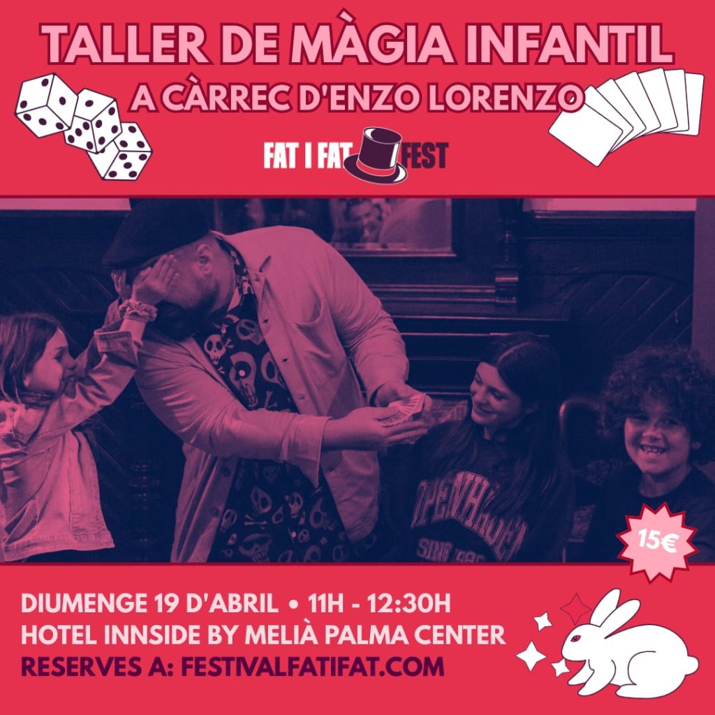 Atenció, atenció! Tots aquells que vulgueu fer els primers passos a dintre del sorprenent univers de la màgia, el diumenge 19 d’abril a les 11h es durà a terme el nou Taller de Màgia Infantil del Festival Internacional de Màgia de Mallorca FAT I FAT FEST. El gran Enzo Lorenzo impartirà el Taller de Màgia […]
