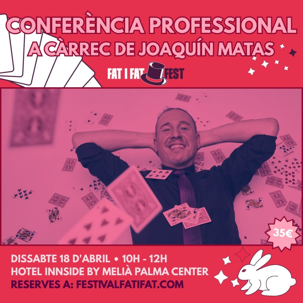 JORNADES PROFESSIONALS CONFERÈNCIA PER A PROFESSIONALS: JOAQUÍN MATAS En aquesta conferència, Joaquín Matas ens presentarà material del seus llibres “A fuego lento Vol. 1 i Vol. 2”, material professional provat davant de públic en centenars d’ocasions. Rutines elaborades ben construïdes, sempre efectives i comercials. Cartomàgia, boles d’esponja, monedes, rutines de saló i de prop, així […]