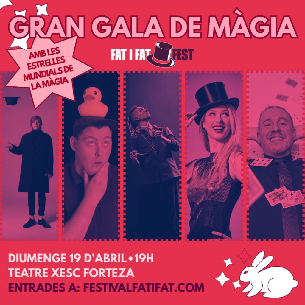 La Gran Gala de Màgia del Festival Internacional de Màgia de Mallorca FAT I FAT FEST tornarà omplir un any més el Teatre Xesc Forteza de Palma amb les millors estrelles mundials de màgia del moment. El diumenge 19 d’abril a les 19h viurem una experiència completament única de la mà dels millors mags i […]